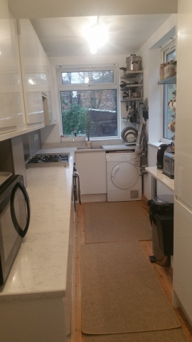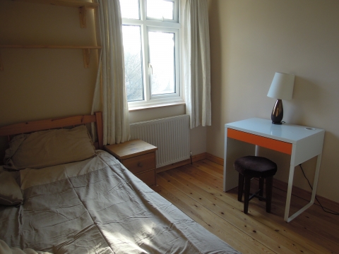 The bedroom has a wooden floor, comfy bed, desk and large floor to ceiling cupboards/wardrobe. It is light room with a view of the garden and a backdrop of trees.There is an efficient gas boiler, double glazing, loft and cavity wall insulation. The bathroom has a shower over the bath or there is a newly tiled separate shower room. Also there is an extra, separate downstairs wc. A new luxury kitchen has been put in with all new appliances and quartz worktop.The kitchen is light with views of the garden and has lots of storage.