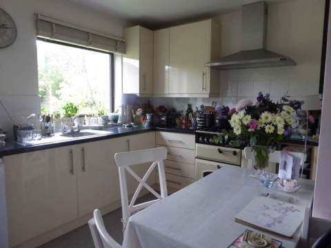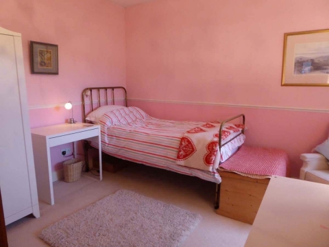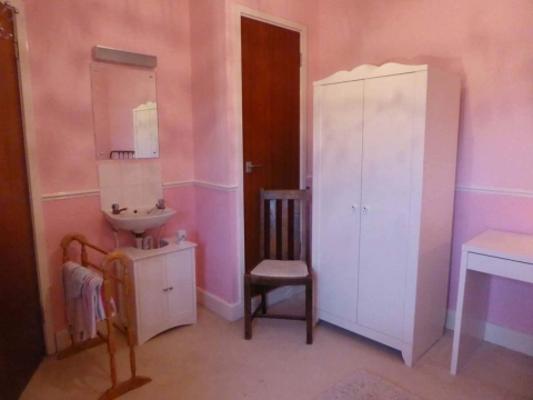 My home is set away from the road, with a large garden, so is quiet and secluded. I work from home . The room available is a good sized double room with a single bed. It has its own basin and is fitted with a desk, bed, wardrobe, drawers, arm chair, rug .