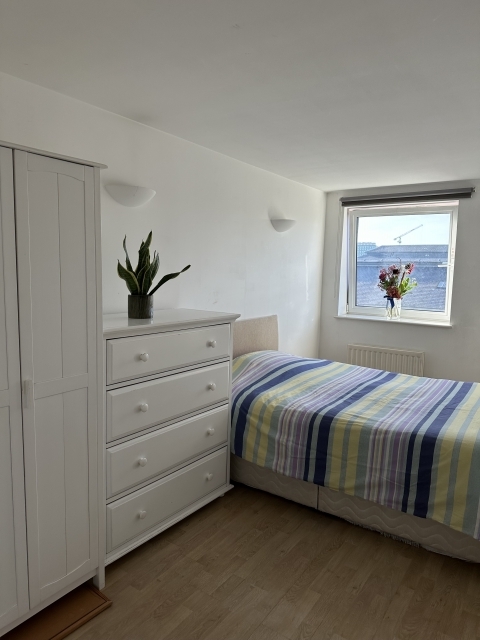 Room available now: spacious double room with river view and private shower room. Fully furnished (Silentnight double divan bed & mattress, wardrobe, chest of drawers, blackout blind).