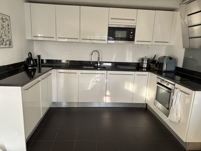 Shared areas: comfortable lounge and dining table, plus an open-plan fitted kitchen with integrated appliances (fridge-freezer, microwave, ceramic hob, oven). Washing machine, dishwasher and Hyperoptic broadband available. (TV present; licence not included.)