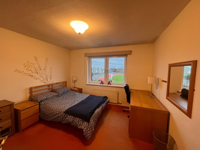 Top floor flat fully furnished with well equipped kitchen. Lounge has large sofa bed for occasional visitors. Recently updated Bath/shower room. Gas central heating. New Washing machine has 1600 spin speed so clothes need little time hanging after that. Dishwasher also recently replaced. Both bedrooms are spacious and have double beds and desks with lamps provided and large mirrored wardrobes in both bedrooms. Hall has large walk in cupboard and boiler/ linen cupboard. Close to beach, university, sports village and near bus routes. Perfect for students or young professionals or university staff. Band D council tax. No extra parking charges as there is a private car park with allocated space to rear of the flats.