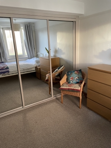 A ground floor 2 bedroom flat in a lovely 1950's block. I have only recently purchased the flat and am slowing making it my own. There is a decent sized lounge with a piano and plenty of space for having people over or to generally relax. The bathroom and toilet are separate which is very handy for those times when both people are getting ready to go. The kitchen is not huge but it has lots of space for someone to move in and feel that they can enjoy cooking. I have ticked the garden option and although it doesn't strictly have it's own garden then is space outside that has been cleverly made private.The room itself is about 3.5m by 2m that has a fitted wardrobe with sliding mirrored doors all along one of the walls, which is a huge amount of storage. The following furniture is also in the room: