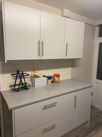 There is one decent sized kitchen with an oven, fridge space and washing machine.