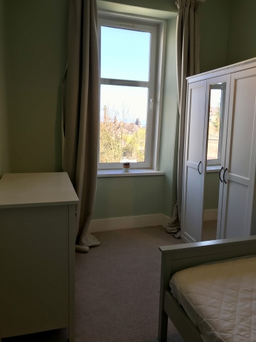 One bedroom available in a three bed flat share. We have our own door to the flat but it is an upstairs flat. Double bedroom overlooking the garden. Shared bathroom facilities. Shared kitchen with your own cupboard available. Shared lounge area with TV and piano.