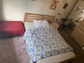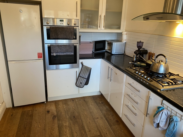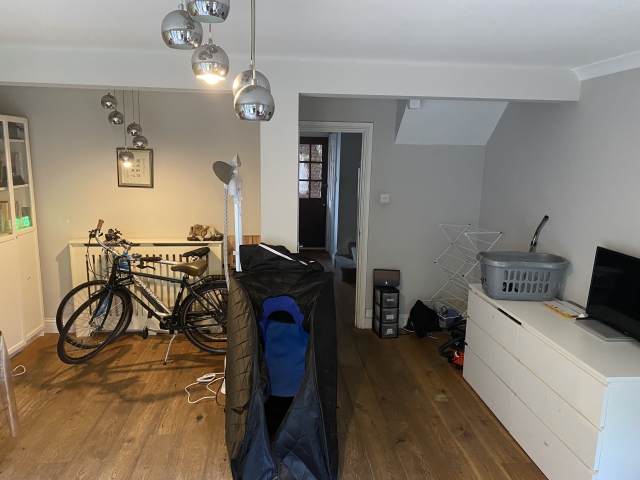 Two furnished double rooms are available upstairs: one standard double and one larger room (approximately 25% bigger). The house is arranged over two floors, with shared use of: