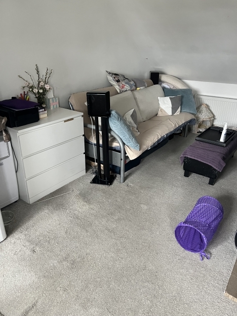 I am looking for a female flatmate to rent out one double room in a 1 bedroom flat. I would take over the living room at night but during the day it would be shared. It’s a cozy flat and includes a cat so you would need to love cats. I am looking for a friendly working professional who enjoys music and movies. The rent includes all