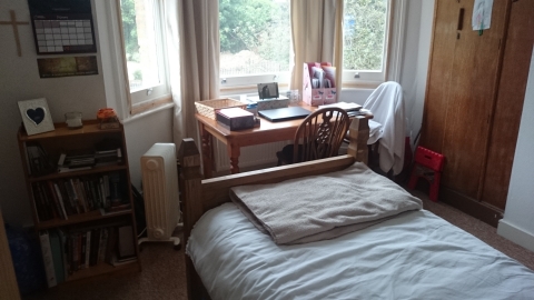 The front bedroom with bay window and ensuite bathroom (£890) is available to rent from Feb 2026 .There are beautiful views of London from the house (from this window, and the attic) and more from the top of Netherby Rd (the road next to Oakhill). One bedroom in the house is kept spare for visitors and hospitality. There is a family bathroom and separate shower room and separate toilet on the 1st floor. The owners previously lived here when growing up and sometimes stay to attend to house matters. M to return to Ichthus Revive camp each year . She was an active member, on this church. with friends in Forest Hill. Oakhill is a caring community house-with opportunities for gardening and the possibility of shared meals, and hospitality to others.