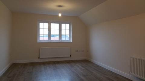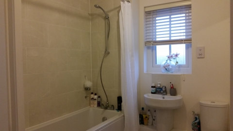 The carpeted first bedroom faces west. It has a fitted wardrobe with self closing doors, blinds and an ensuite. Next door is the second carpeted bedroom. Both bedrooms have blinds and curtain rails. There is a light and airy family bathroom opposite the second bedroom.