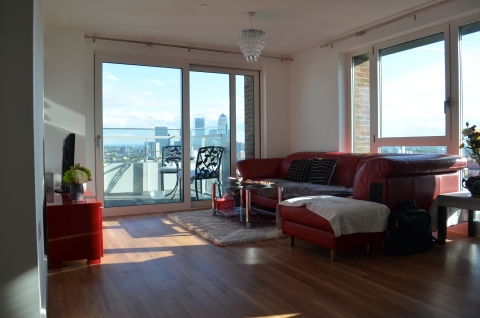 The shared living room enjoys a 180 degree view including the main landmarks in London.