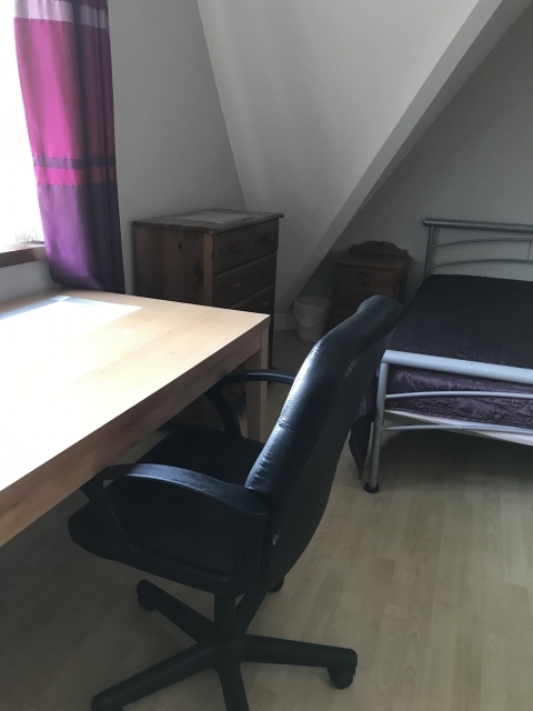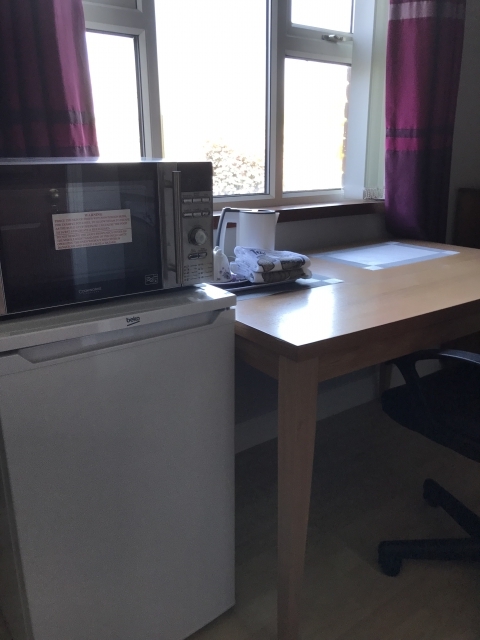 Large single room ( single occupancy) with built in wardrobe, with wooden floor, tv and fridge,microwave and kettle,ensuite with large shower cubicle and power shower. Peaceful, quiet location with private outlook unto trees and hedge.