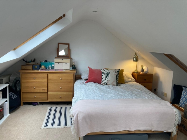 Furnished double room is available with double platform bed, chest of drawers and wardrobe (on landing), desk negotiable: £740 rent with £750 deposit - available 1st June 2026.