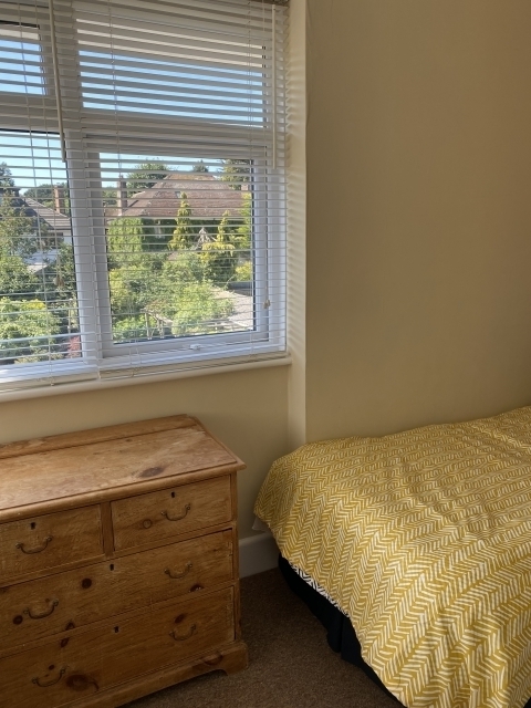 The kitchen/diner is a communal space for everyone, having a gas hob and electric cooker. A fridge purely for your use is available plus cupboard space. We all share the crockery, cooking utensils etc. The room itself overlooks the garden and benefits from being south facing. There is garage space if you have a bike. The room has its own wash basin and is carpeted throughout with recent re-decoration. The large bathroom is almost exclusively yours and has a bath with shower. Occasionally my daughter visits and then she also uses that bathroom. This accommodation would suit anyone who likes a quiet, tidy home and is independent as we all tend to live our own lives within the property.
