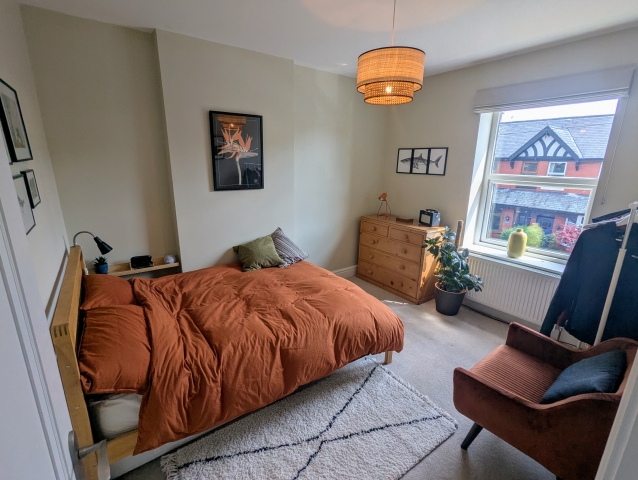 The house is a three bedroom, large Victorian terrace in a quiet Peak District village. The room is a bright south facing double. Already furnished.