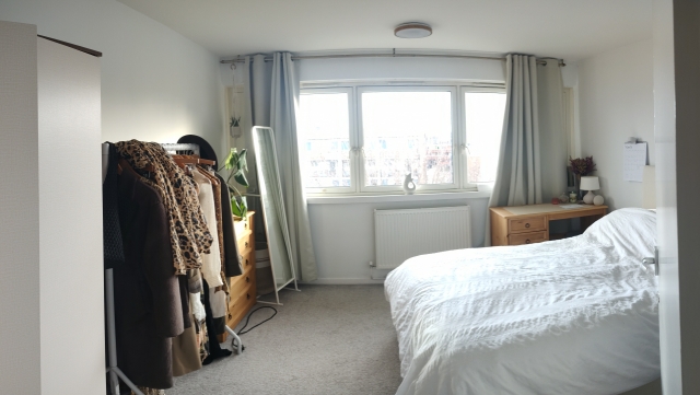 Peaceful household, occsssionally I like to have the girls from church over. Clean and light spacious flat. The room is furnished with a double bed and mattress, wardrobe, bed side table, chest of drawers. Shared lounge, kitchen and bathroom.