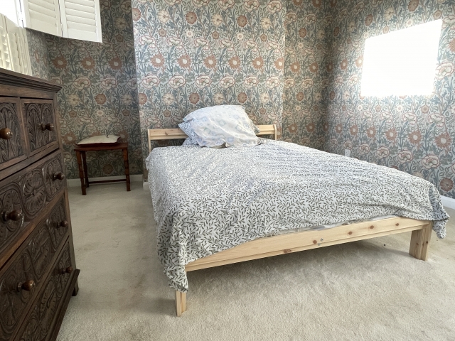 The room for rent is large, with a double bed, a tv and is light due to two large windows.