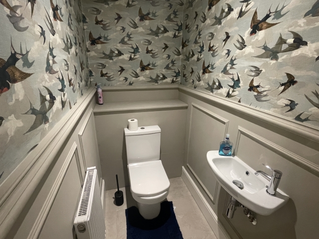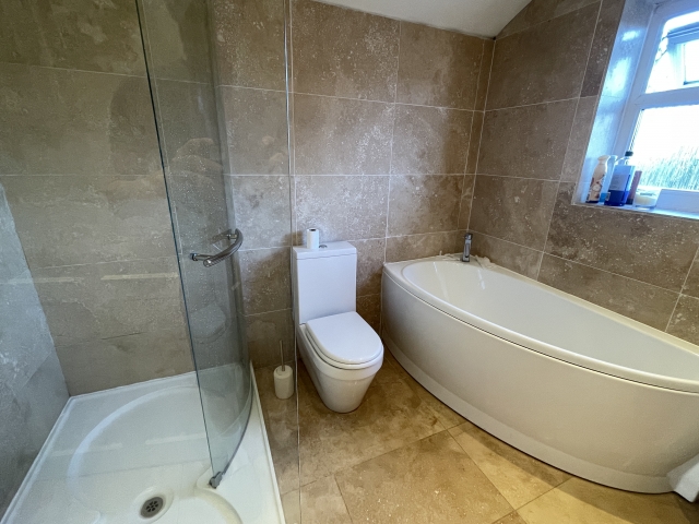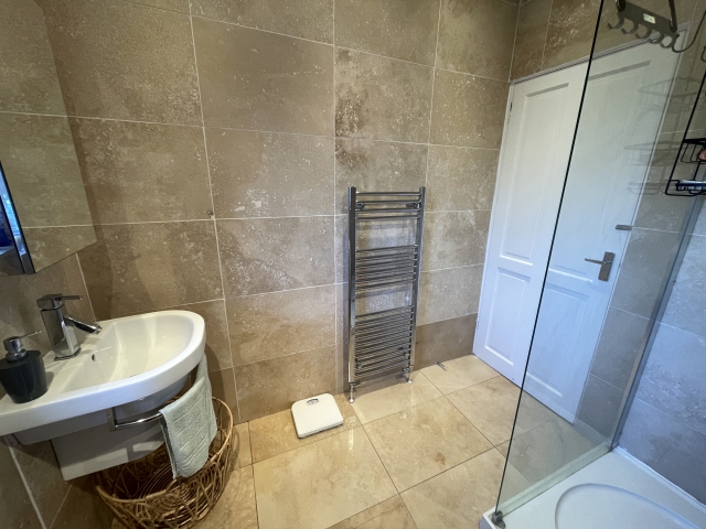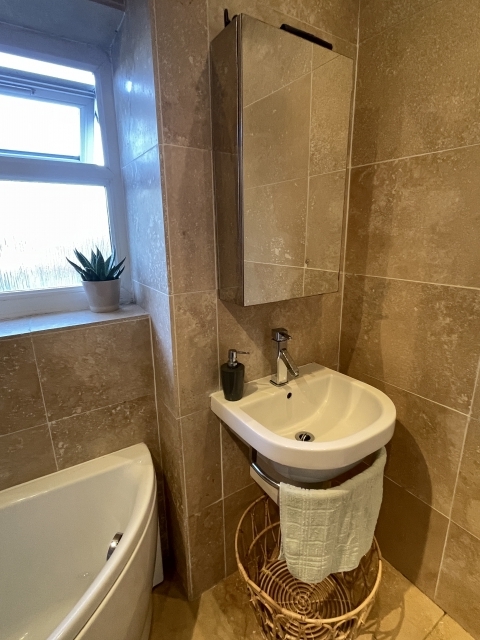 Upstairs there is a beautiful sandstone-coloured bathroom, along with 2 bedrooms and a cosy spot on the landing for reading.