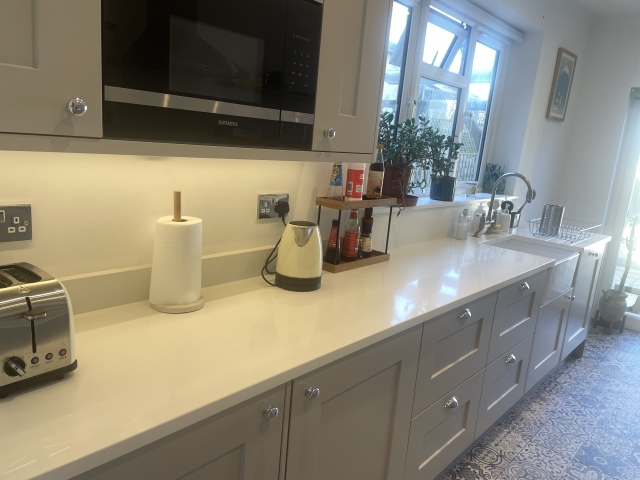 There is a well-furnished, decent sized kitchen looking out onto a patio garden.